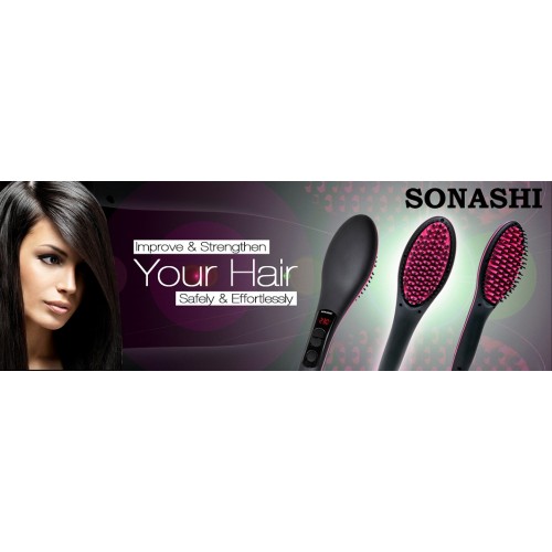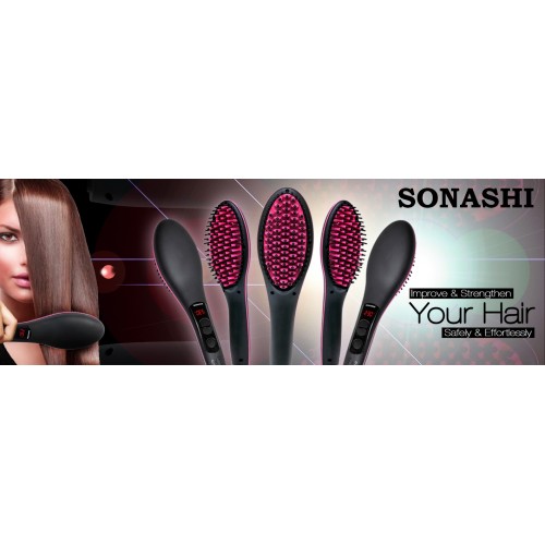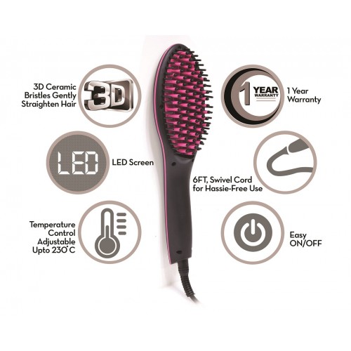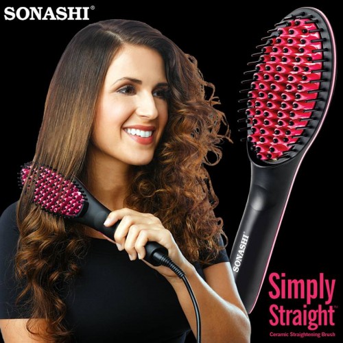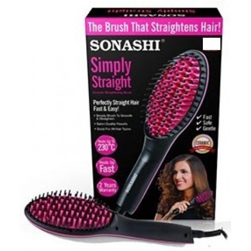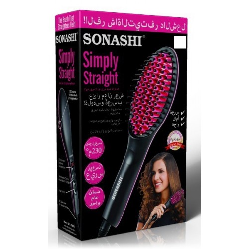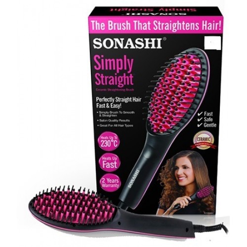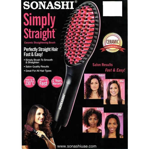Sonashi Simply Straight Ceramic Brush, Ceramic Heated Bristles, Perfectly Straight Hair Fast & Easy Way, Simply Brush To Smooth & Straighten, Salon Quality Result, No Damage & No Chemicals, Temperature Control Adjustable Upto 230 Degree Celsius, Heats Up Fast, Great For All Hair Types, LED Screen Display For Temperature, 6 Ft. Swivel Cord For Hassle Free Use, 220/240V 50/60Hz. 64W